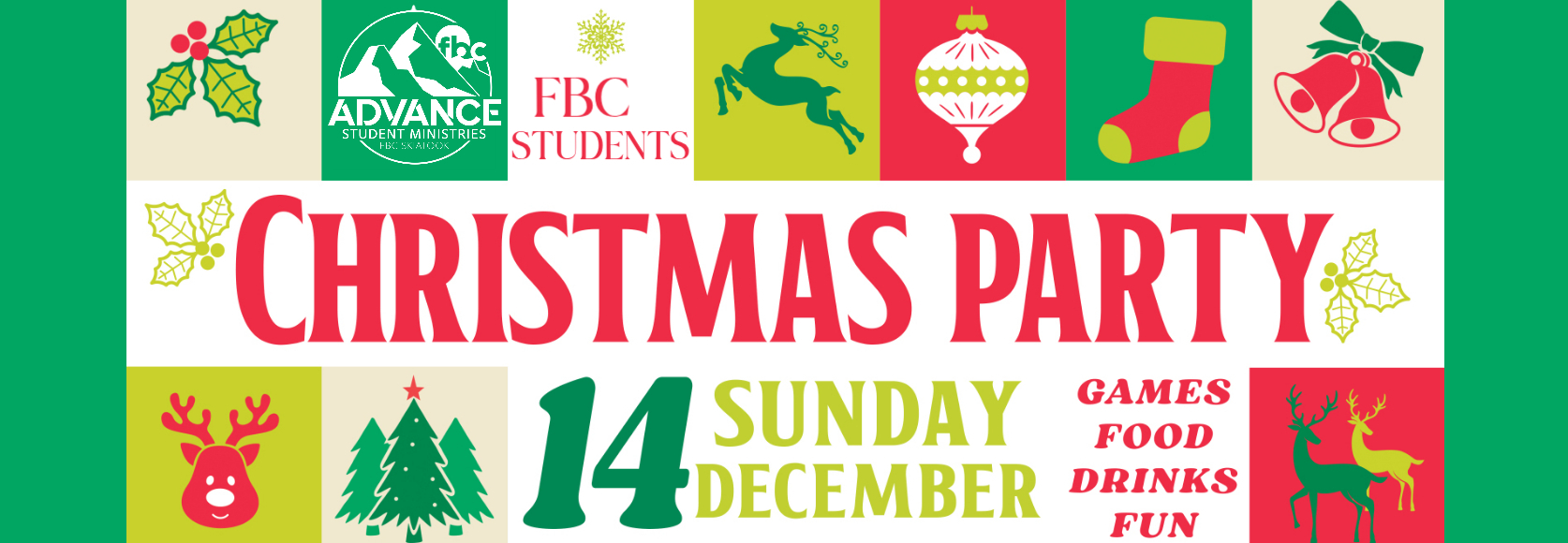 FBC Students Christmas Party🎄 Sunday, December 14 | 6:00–8:00 PM📍 FBC South Campus Get ready for a festive night of fun at our StudentChristmas Party! We’ll have games, food, Christmas music, and plenty of holiday cheer! Wear something festive, bring a friend, and come celebrate the season with us! Open to all 6th–12th graders — […]