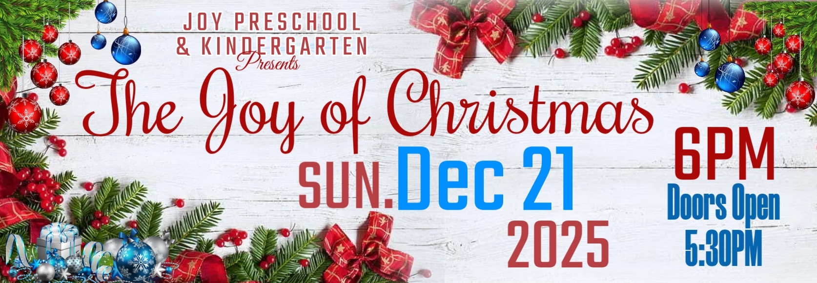 🎄 JOY Preschool & Kindergarten Christmas Program “The Joy of Christmas” 📅 Date: December 21🕕 Program Begins: 6:00 PM🚪 Doors Open: 5:30 PM Join us as our JOY Preschool and Kindergarten students share “The Joy of Christmas” through songs, smiles, and the sweet message of Jesus’ birth.It’s always a precious night—perfect for families, grandparents, and friends!